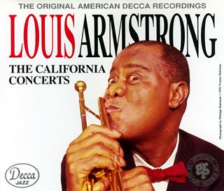 SATCHIMO の LIVE 版ならこれが BEST ONE 数ある LIVE 収録の中で、躊躇せずにこの CD(4毎組)がお勧めです。 1955/1/30 の California Concerts(Pasadena)と 55/2/21 の Hollywood(Crescendo Club) での演奏が収録されています。<プレイヤ−&聴衆とも双方が ENJOY するとは、こういうことである> と実感できます。 Opening theme である "When its sleepy time down south" が4回収録されています!!。それを知って、毎回の演奏がどのように味付けされているのか聴く前からわくわくさせられます。 又、ガイド冊子には、メンバ−各人のショツトに加えて、Joe Louisと全員がおさまつた珍しい記念撮影もあり楽しめます。Producer's Note には、その他色々なエピソ−ドも披露されています。更に、だめ押しは、"BABY, IT'S COLD OUTSIDE" での Middleton とLouis との VOCAL です、絶妙のかけあいは筆舌しがたい!!。